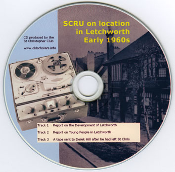 Recordings made by SCRUSCRU - The St Christopher Recording Unit made many recordings during the 1950s and early 1960s, and at one point the BBC came to make a news report on their activities. We have obtained three recordings made by SCRU and put them on CD. Two are reports made in Letchworth, the other a tape sent to Derek Hill shortly after he had left the school in 1962 SCRU CD £5.00, postage as for those above. |